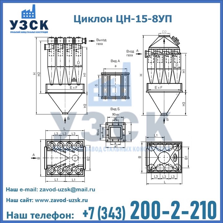 Завод «УЗСК» в Черкесске предлагает большой выбор циклонов ЦН-15-500×8УП и прочих устройств, полностью укомплектованных и готовых к эксплуатации. Мы гарантируем соответствие оборудования всем требованиям ГОСТ и ТУ, износостойкость и высокую производительность предлагаемого оборудования. Уральский Завод Стальных Конструкций изготавливает и продает надежное, эффективное и производительное оборудование, имеющее длительную гарантию и большой эксплуатационный ресурс. Если требуется изготовить циклон нестандартных размеров, то такой вариант выполнения заказа тоже предусмотрен, так как предприятие имеет собственные производственные площади и надежных поставщиков. На все поставляемое или производимое оборудование имеются чертежи и прочая техническая документация. Заказать и купить циклоны или прочее оборудование высокого качества и по доступной цене можно через наш сайт или по указанному в разделе «Контакты» телефону.
