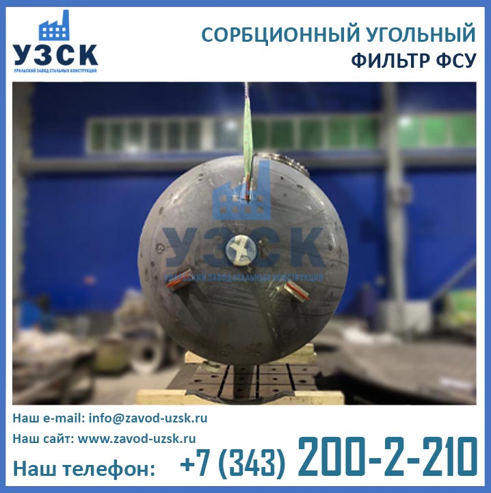 Качественную работу отопительных и промышленных котельных, линий по очистке конденсата и природных вод, электростанций обеспечивает фильтр сорбционный угольный типа ФСУ — вертикальный сосуд с одной камерой цилиндрической формы. Основное назначение оборудования состоит в глубокой очистке возвращаемого с производства конденсата от запахов, органических загрязнений и привкусов. Использование ФСУ в системах водоподготовки гарантирует очищение субстанции от масел, органических примесей, остатков нефтепродуктов до нормального значения — 0.52-1.0 мг/л. Купить в Черкесске угольные фильтры предлагает наш Уральский завод стальных конструкций. Мы выполняем производство ФСУ под нужды предприятия, возможно изготовление сорбционных фильтров ФСУ из нержавеющей стали включая корпус и внутренние устройства.